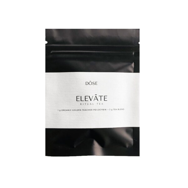 DÖSE ELEVATE RITUAL TEA is offered to boost your mood to incredible heights. A blended green & white tea infused with bursts of citrus— aromatic notes of lavender and the sweet scent of jasmine to accentuate your magical mushroom journey. This specially curated organic tea blend will mask the taste of mushroom beautifully while mitigating instances of nausea and upset stomach through the steeping process. Ingredients: zesty bergamot, kaffir lime citrus, lemon balm, green + white tea leaves, lavender, jasmine + one gram golden teacher mushroom